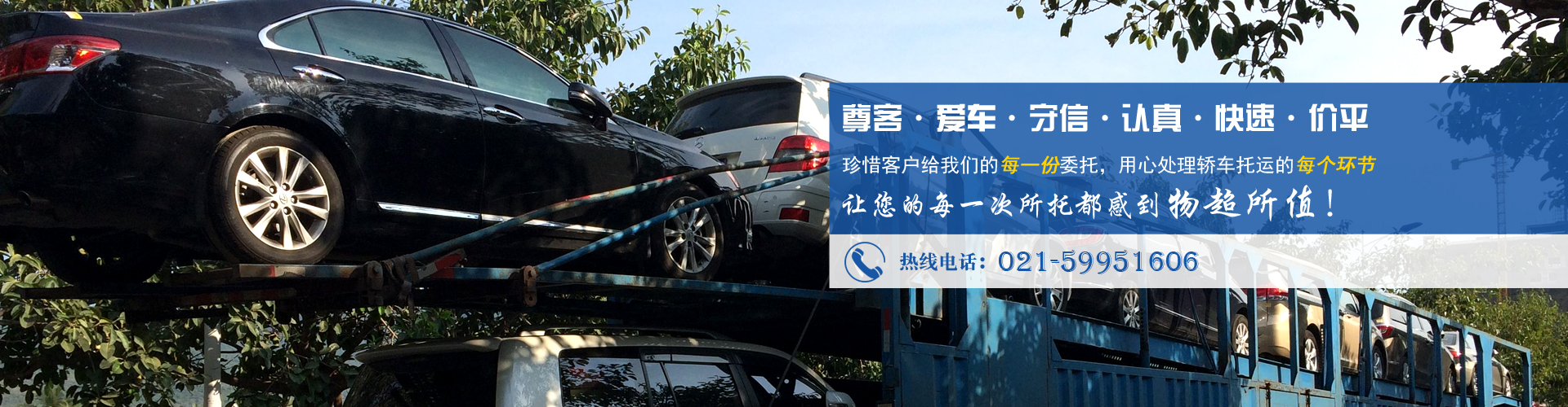 公司承諾:同等的價(jià)格,我們比速度,同等的速度,我們比服務(wù),同等的服務(wù),我們比誠信!公司全體員工牢記并且踐行著“尊客、愛車、守信、認(rèn)真、快速、價(jià)平”的服務(wù)理念,珍惜客戶給我們的每一份委托,用心處理轎車托運(yùn)的每個(gè)環(huán)節(jié),讓您的每一次所托都感到物超所值..... 了解更多